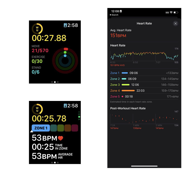운동을 하는 동안 내 심박수가 어디에 있었는지, 애플워치는 그 정보를 잘 표시해주는데요.