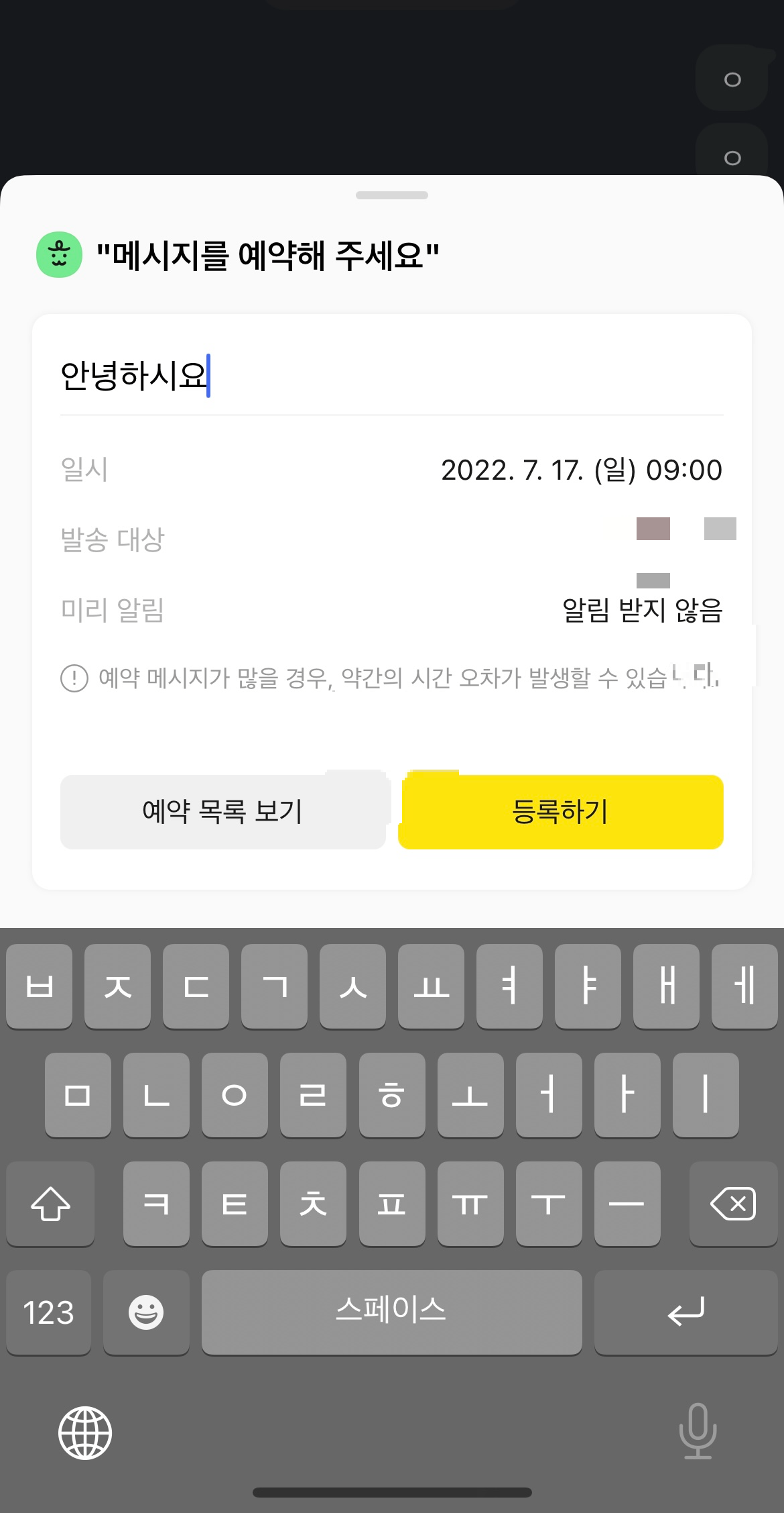 드디어 카카오톡에서도 예약 메시지가 가능해졌는데요.