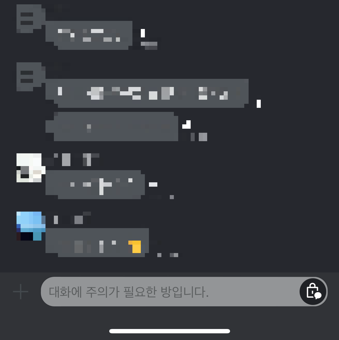 이렇게 입력창 잠금을 설정하게 되면 채팅방에서 하단에 입력창이 잠겨있는 모습을 보실 수 있습니다.