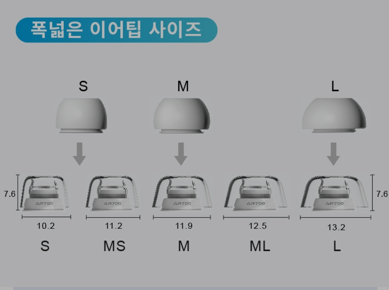 저 같은 경우 정품 이어 팁 M사이즈가 딱 맞아서 라텍스 AR700도 M사이즈로 구매했더니 역시 딱 맞았습니다.