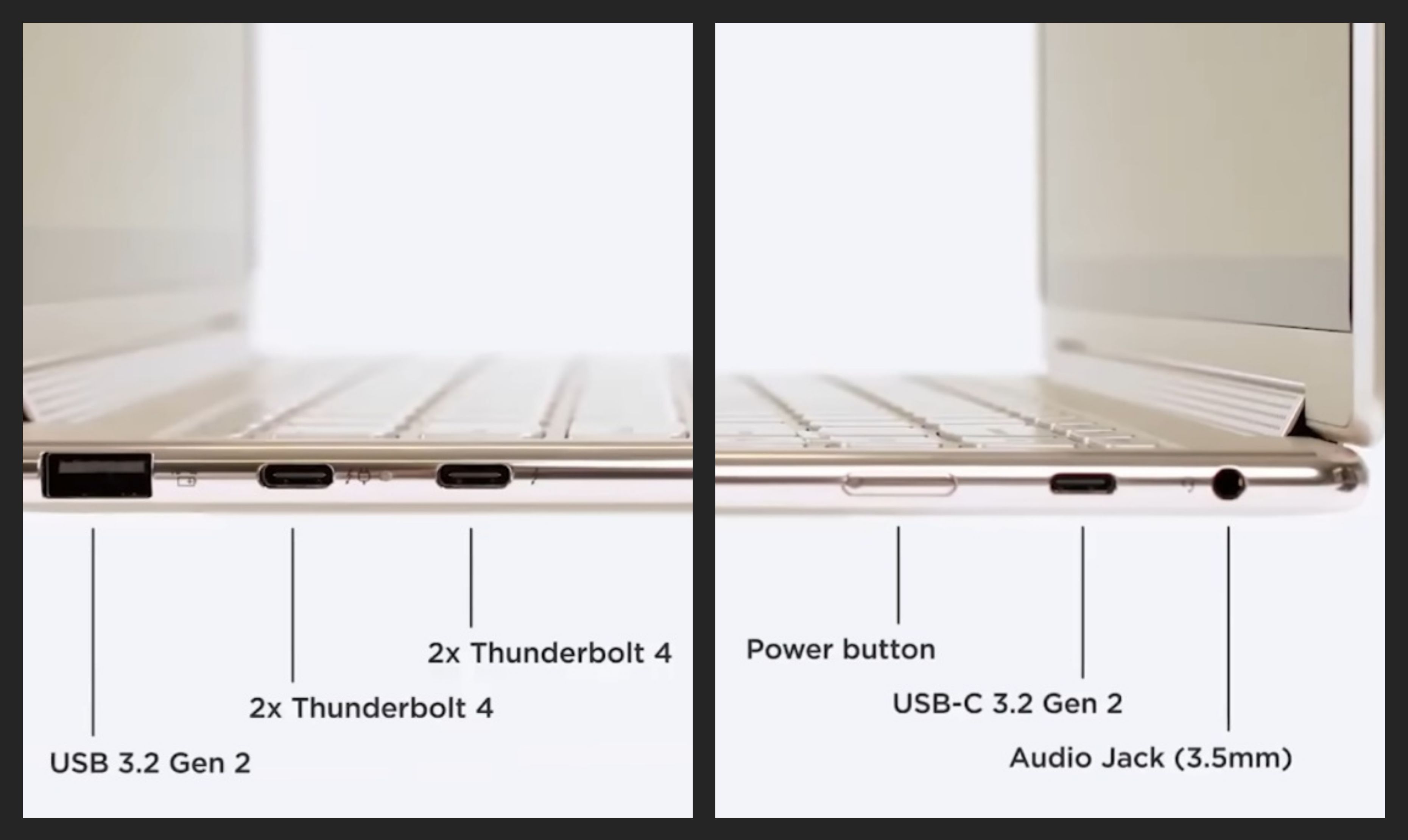 USB-C를 통한 충전을 지원하기 때문에 충전기를 두고 나와도 친구나 동료에게 어댑터를 빌릴 수 있는 기회가 많다. 마지막으로, Lenovo가 Thunderbolt 4를 포함한 USB 포트 4개(Type-A 포트 1개, Type-C 포트 3개)를 지원하는 것이 너무 좋다. 맥북은 포트의 개수가 적어 아쉬운데, Yoga 9i는 USB 포트가 많아서 너무 좋다.