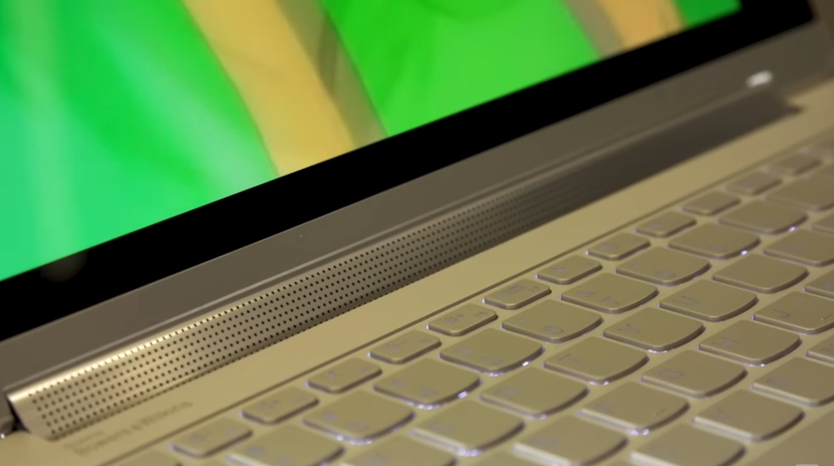 오디오의 경우, 요가 9i는 레노버의 시그니처 스피커 바 힌지가 특징입니다. 그래서 Yoga는 어떤 모드에서도 소리가 사용자를 향하도록 하는 혁신적인 디자인을 자랑할 뿐만 아니라, 제가 이 크기의 노트북에서 들은 것 중 가장 깊은 저음으로 훌륭한 오디오를 제공합니다.