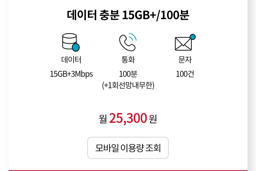 위 사진은 제가 사용하고있는 알뜰요금제 입니다.